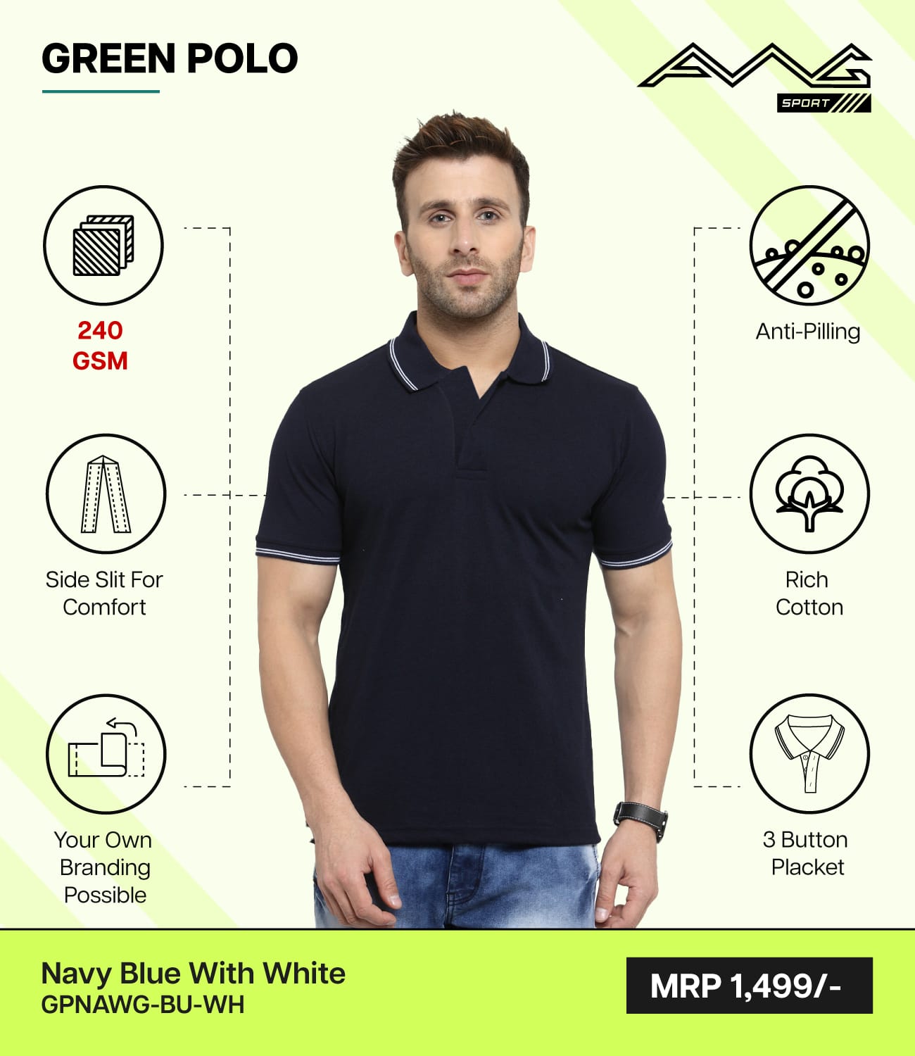 AWG-GREEN POLO NEW Navy Blue With White
