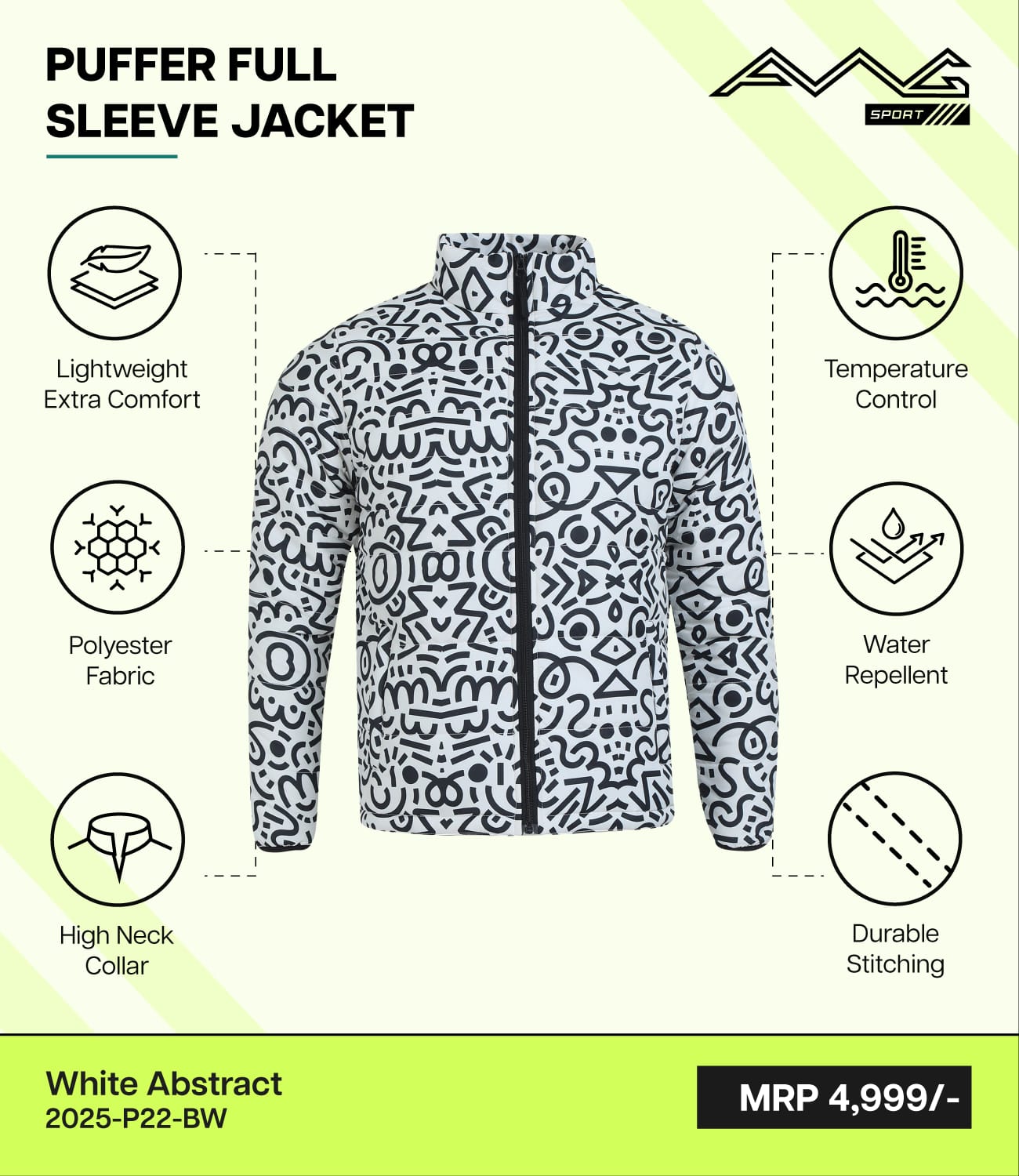 Be the first to review “AWG-PRINTED PUFFER JACKET White Abstract”