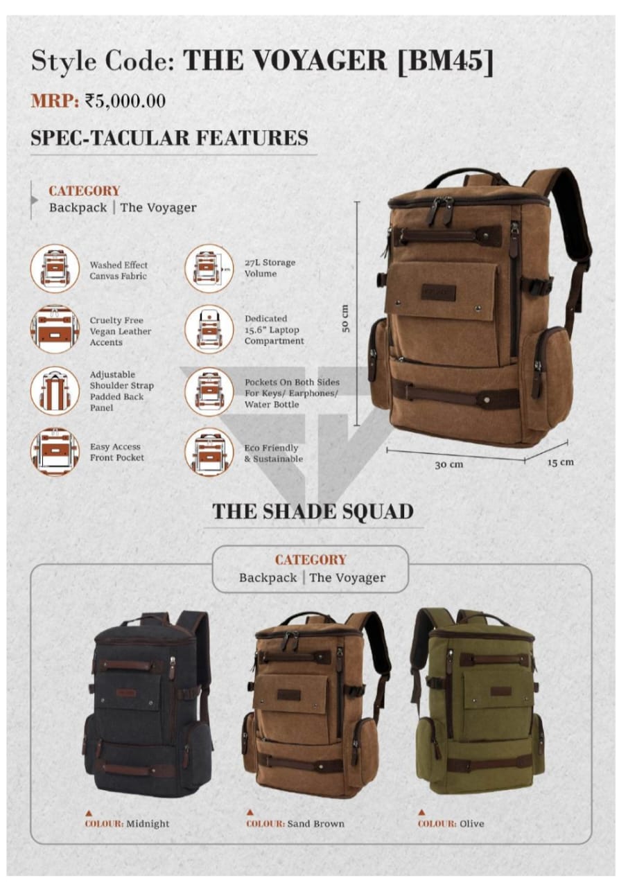 Sustainable Canvas Backpack, 15.6 inch laptop compartment,Spacious Main Compartment,Easy Access Pockets,Product Dimensions (LxWxH) – 15 x 30 x 50 Centimeters.