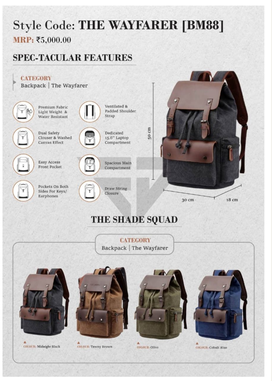 Sustainable Canvas and Vegan Leather Backpac,Product Dimensions (LxWxH) – 18 x 30 x 50 Centimeters.